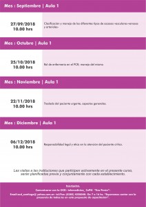 Esta actividad dará comienzo el próximo Jueves 22 de Marzo del corriente año de 10 a 11 hs , bajo la modalidad a distancia por videoconferencia (un jueves al mes) y esta destinada a licenciados , técnicos y auxiliares de enfermería.
